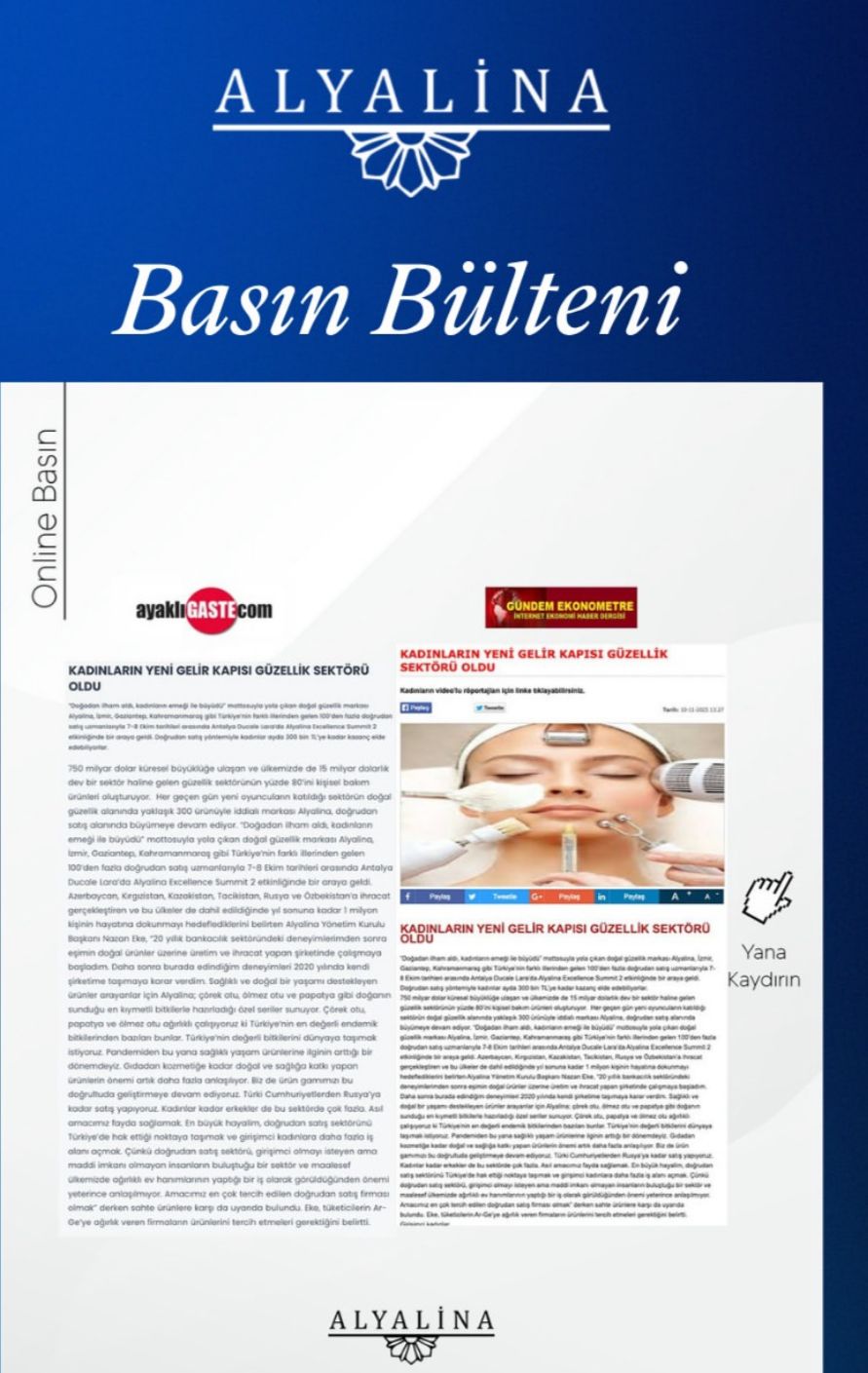 Markanın medyadaki bu yükselen varlığı ,Alyalinanın sektördeki etkinliğini güçlendirirken aynı zamanda güvenilr marka kimliğini de daha sağlam bir şekilde pekiştiriyor.