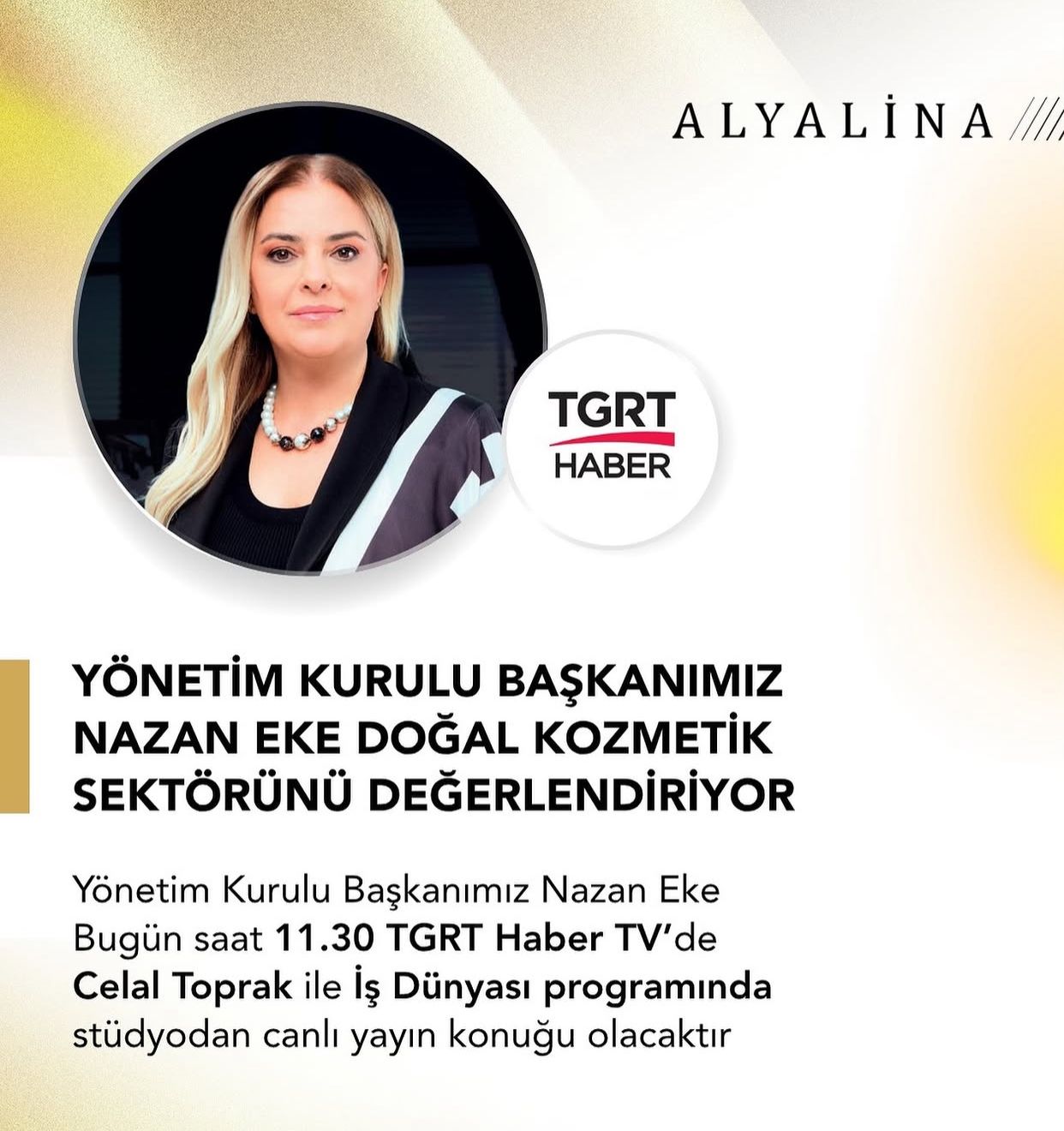 Yönetim Kurulu Başkanı Nazan Eke , kozmetik sektüründeki güncel gelişmeleri , markalaşma sürecini Türkiyenin global pazardaki konumunu TGRT HABER DE DEĞERLENDİRMİŞTİR.